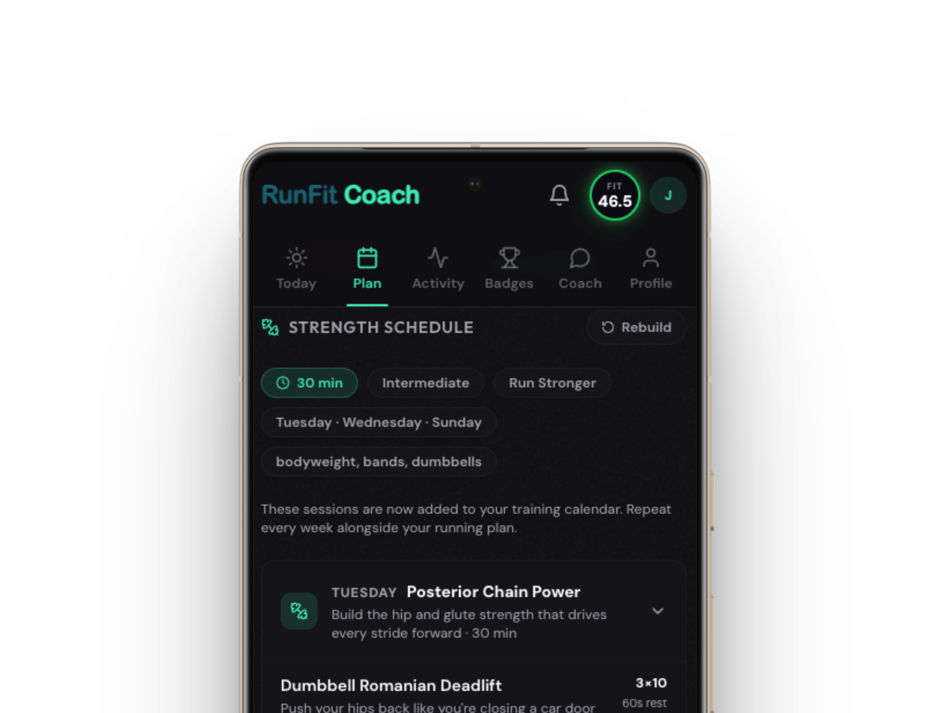 RunFitCoach is different. Every pace zone is calculated from your FIT Score — a real measure of your fitness that updates as you improve. Your plan adapts when life gets in the way. And your strength work actually matches how your legs feel today.